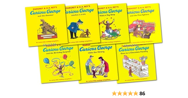 Curious George The Monkey Collection 7 Book Set Pack Series Dinosaur Fire Fighters Visits The Library Birthday Surprise Visits A Toy Shop Catches A Train Goes To A Chocolate Factory Curious George Amazon De Bucher